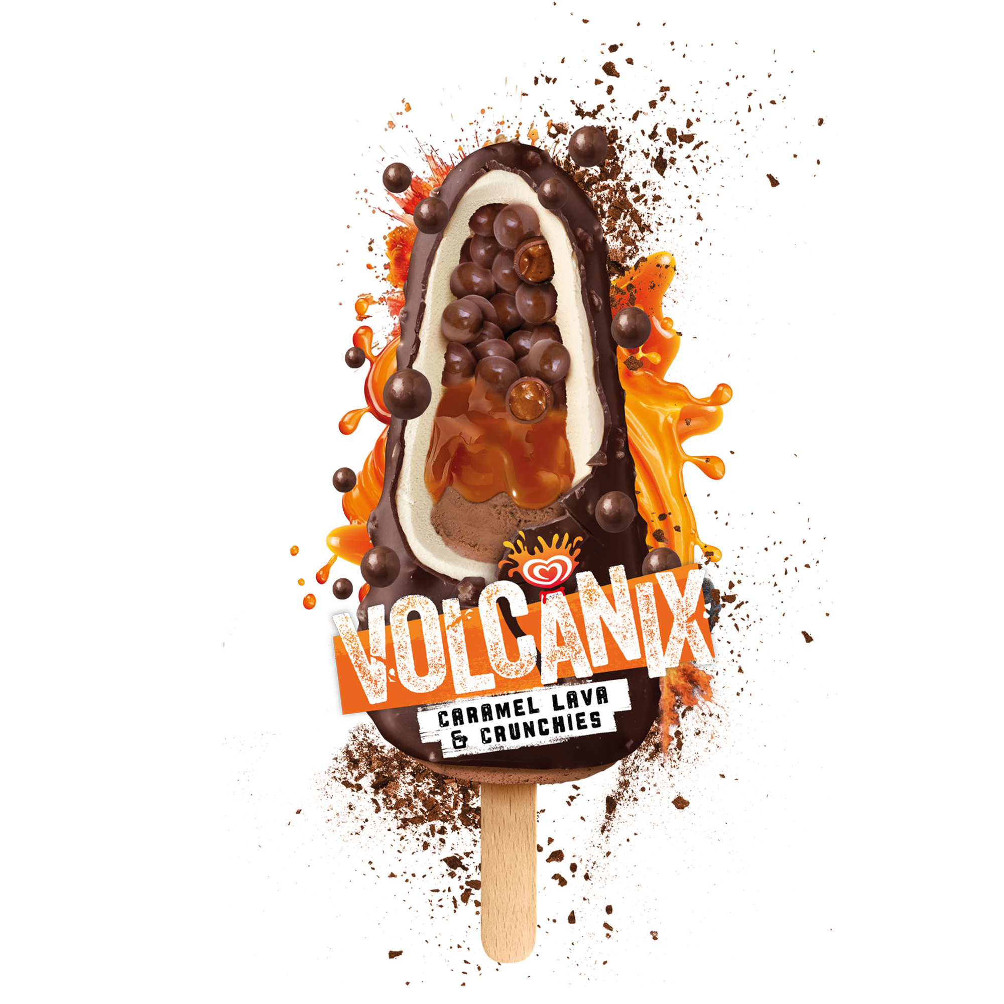 | En unik smakupplevelse i fem lager! Njut av sammetslen vanilj- och chokladglass, salt karamellsås, krispiga choklad-karamellkulor och knapriga kexbitar – allt täckt med läcker choklad. |